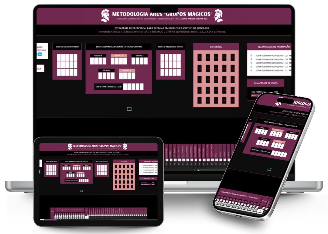 ✅ 25 dezenas combinadas em 5 Grupos “Mágicos” de 4 números cada