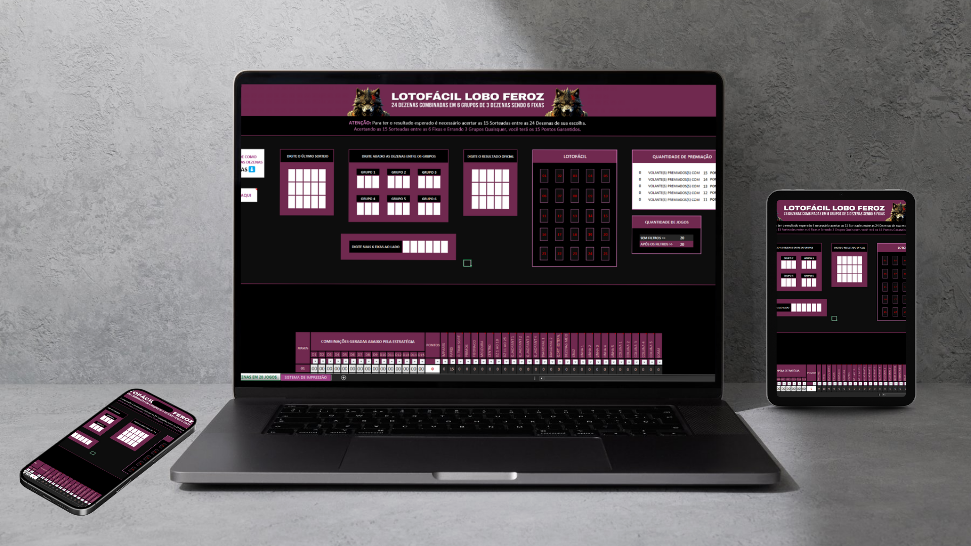 24 Dezenas que serão Combinadas em 6 Grupos de 3 Dezenas, sendo 6 Fixas.